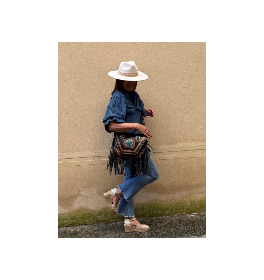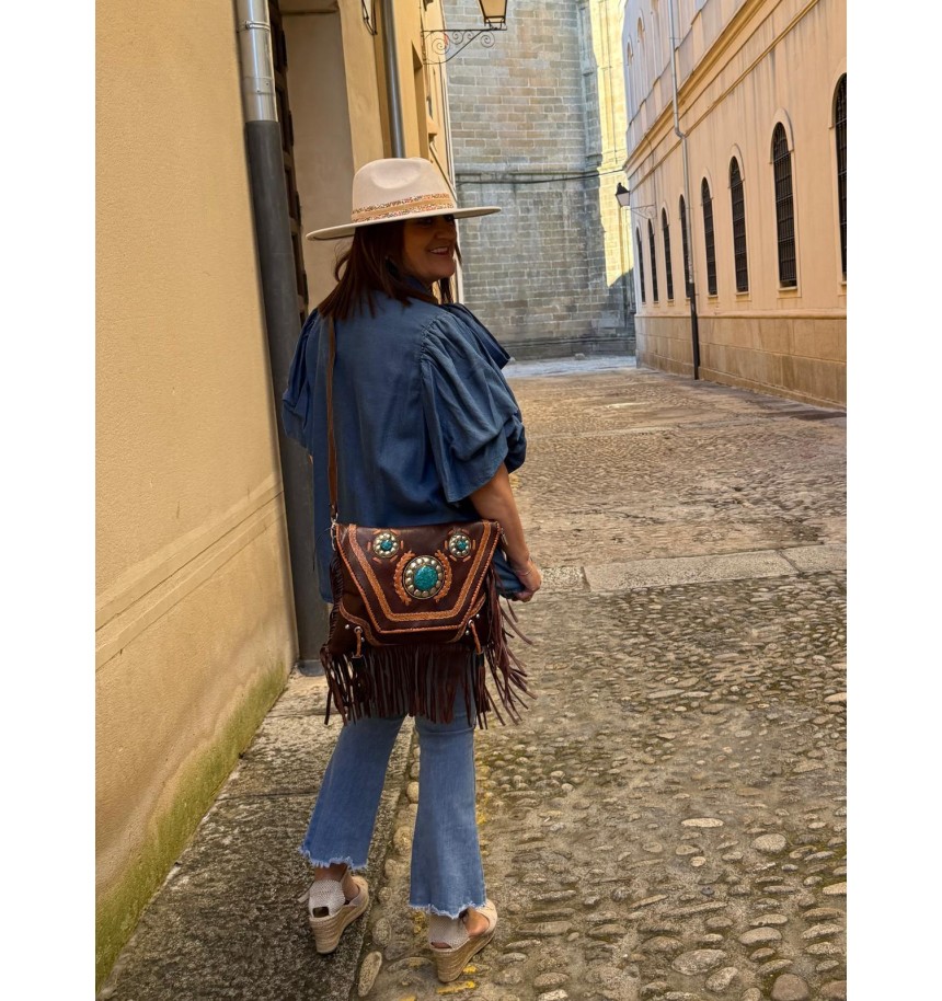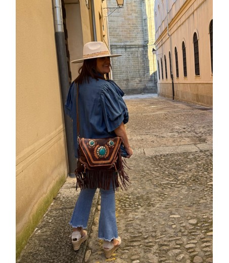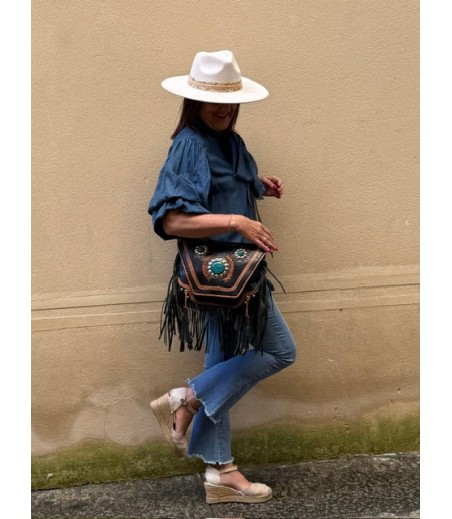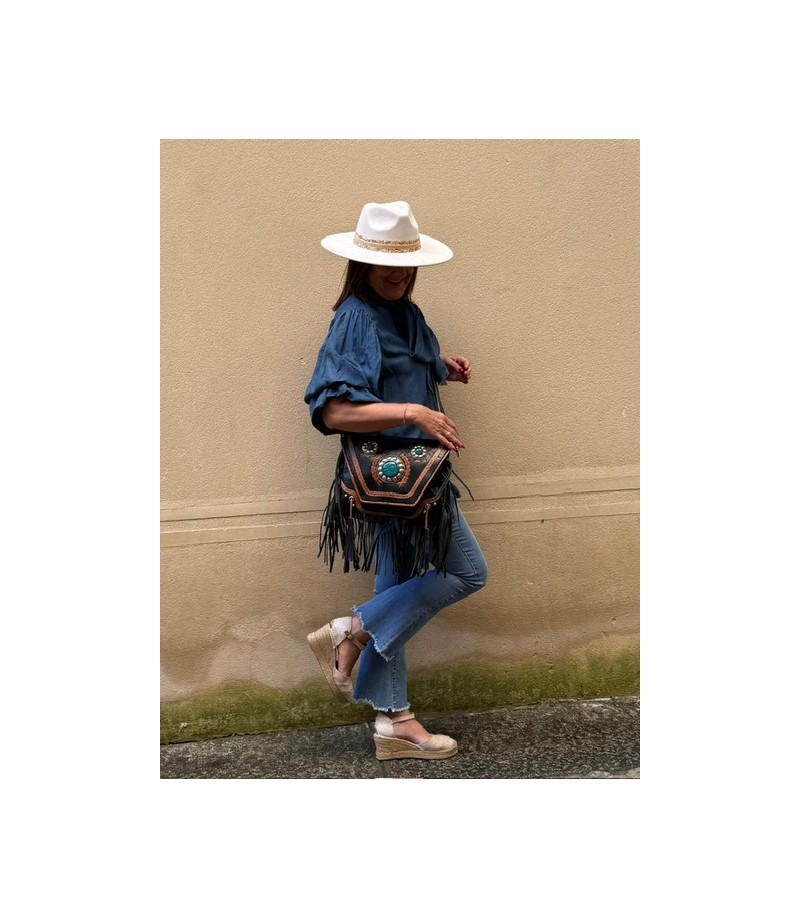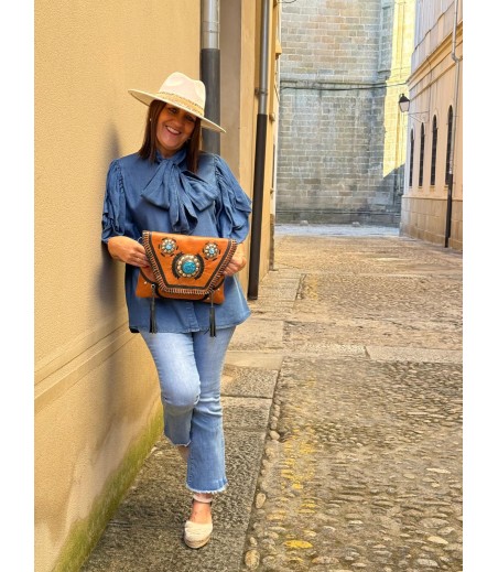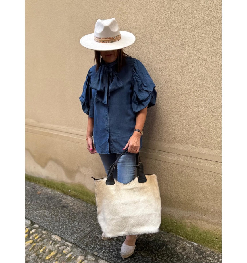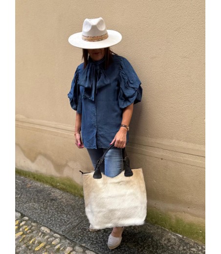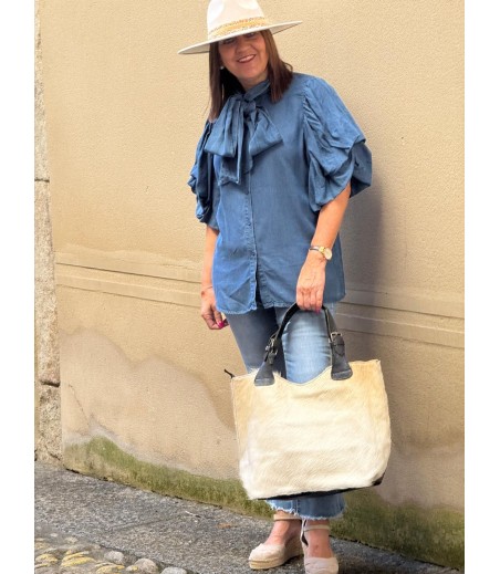 Camisa Denim con mangas abullonadas , perfecta para brillar en cualquier ocasion