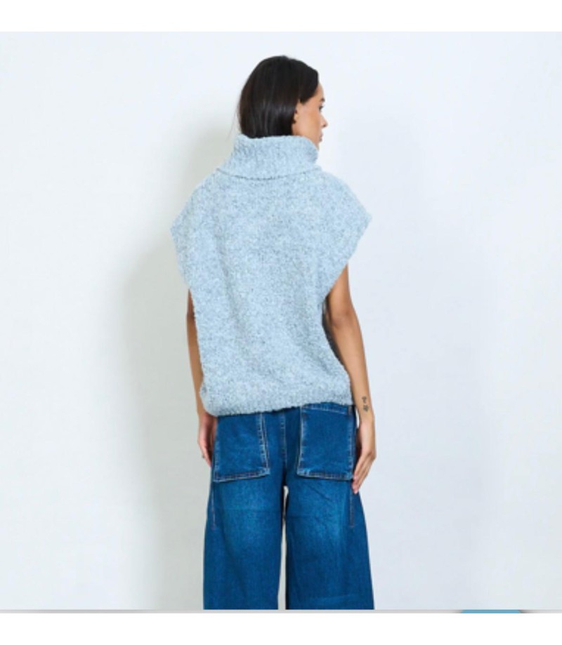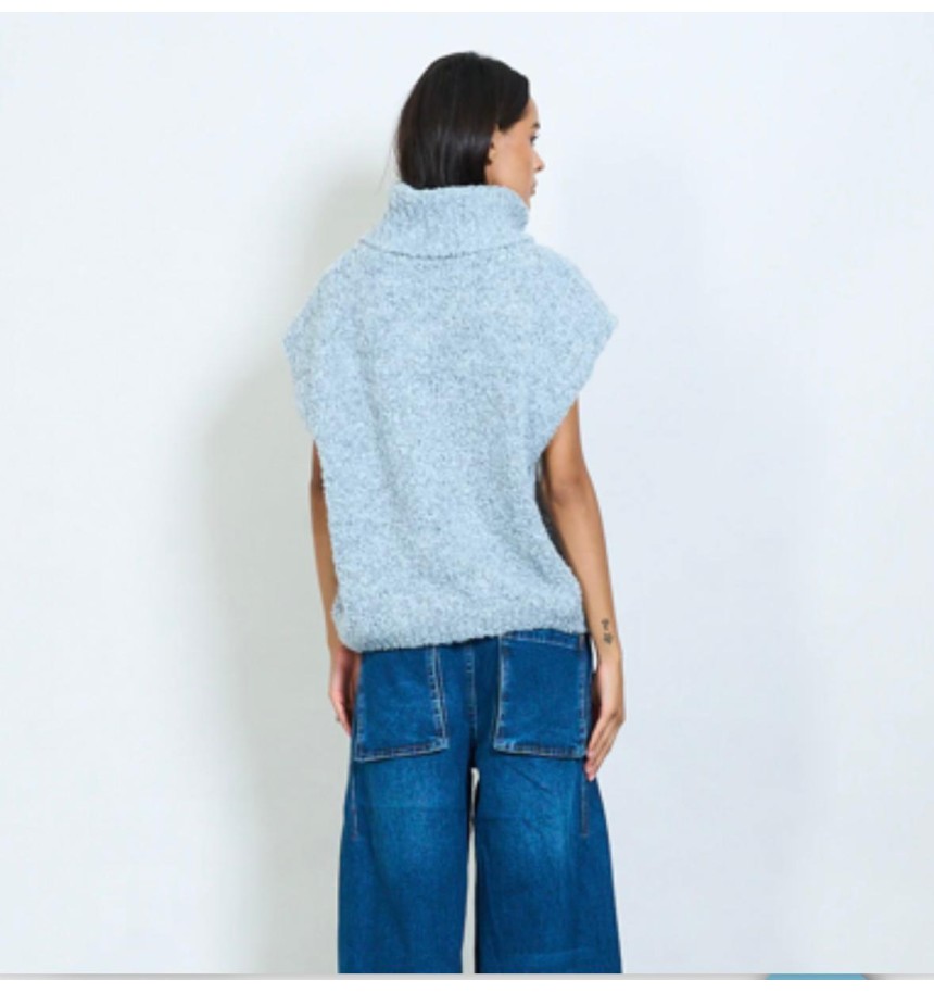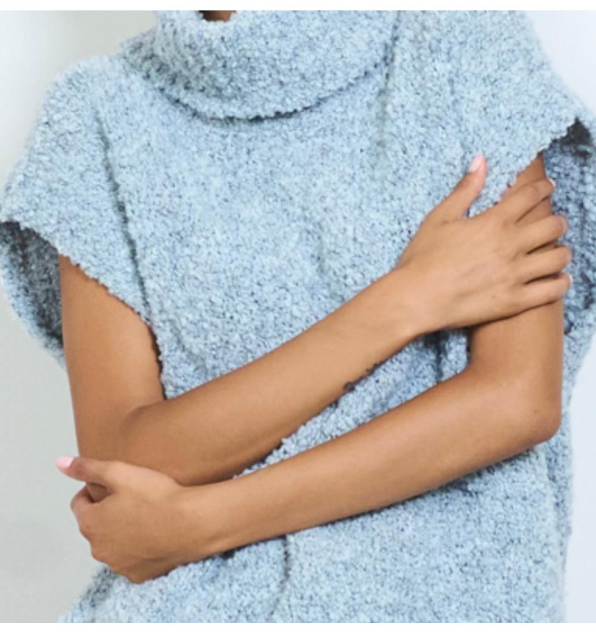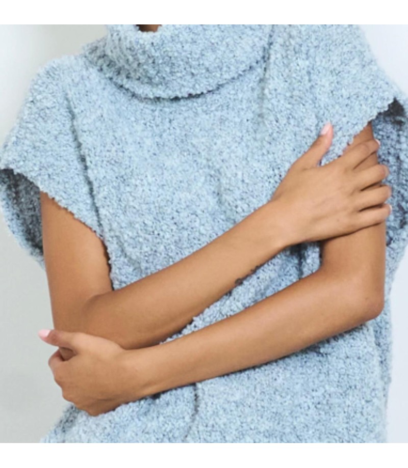 sin manga texturizado de punto boucle,detalle de cuello en punto acanalado para mayor comodidad