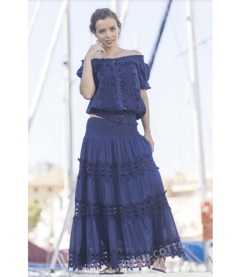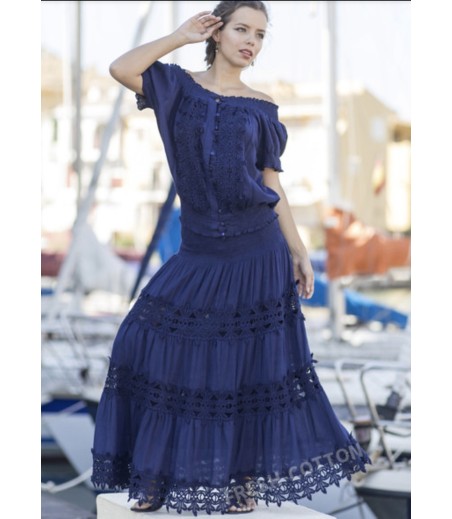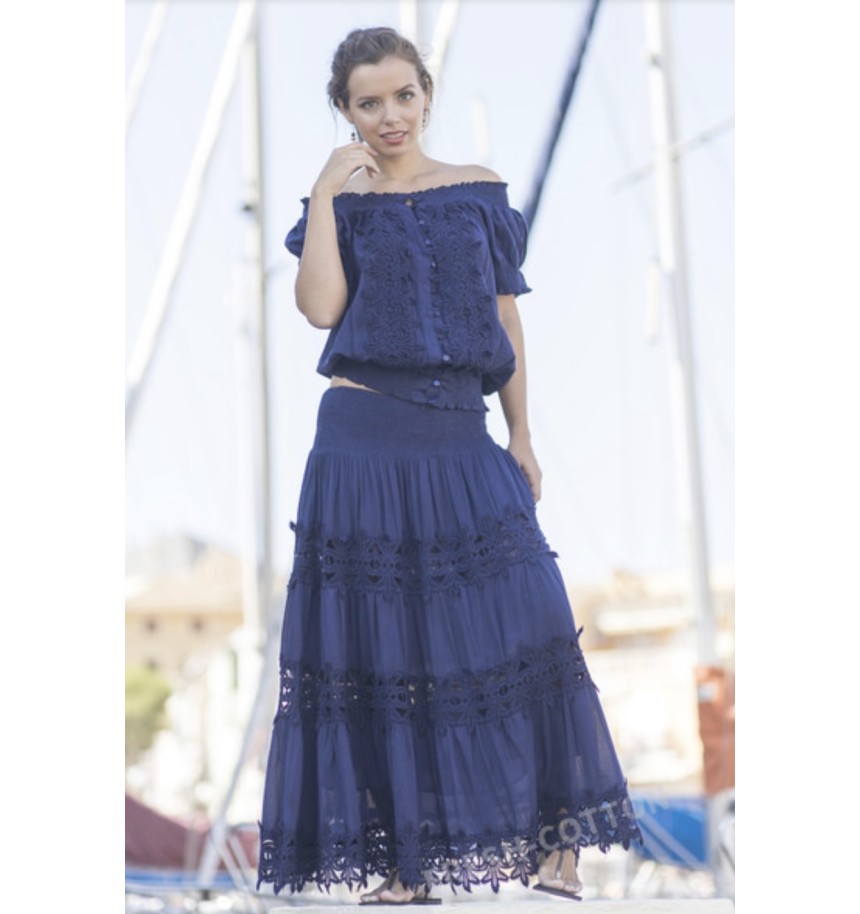 Falda larga de estilo romantico y femenino en tono azul marino